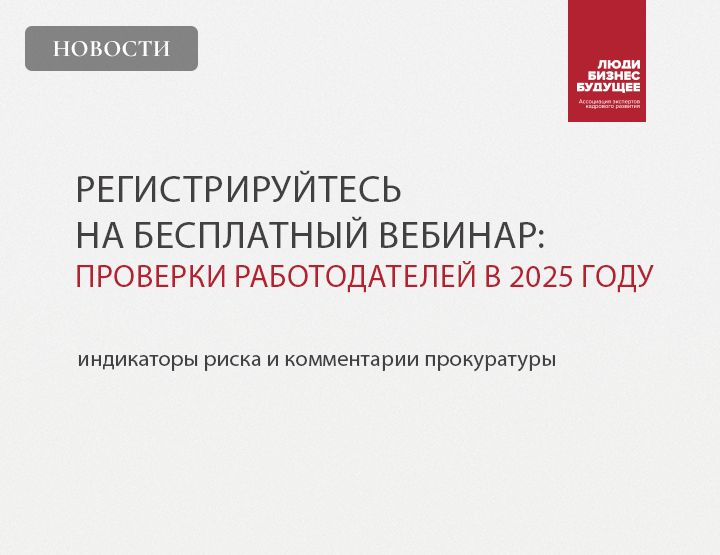 Ассоциация экспертов кадрового развития “Люди. Бизнес. Будущее” приглашает HR-специалистов, кадровиков, руководителей ЧАЗ и руководителей малого и среднего бизнеса на вебинар о проверках контрольных органов и рисках для работодателей в 2025 году.